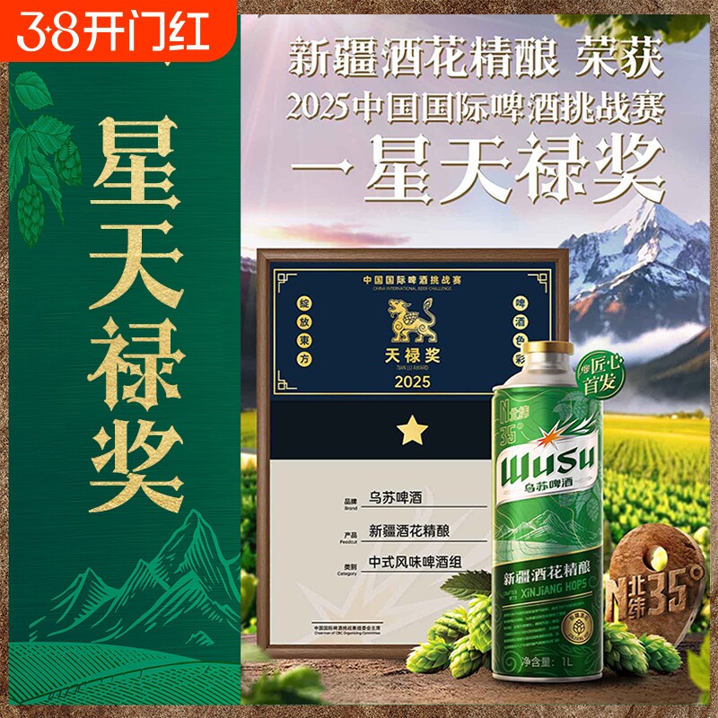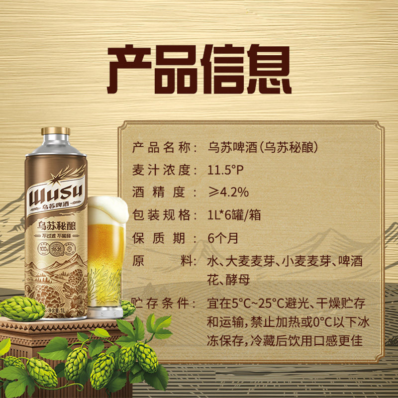 📚 乌苏新疆酒花精酿啤酒1L*6罐装整箱大乌苏啤酒听装过年送礼秘酿