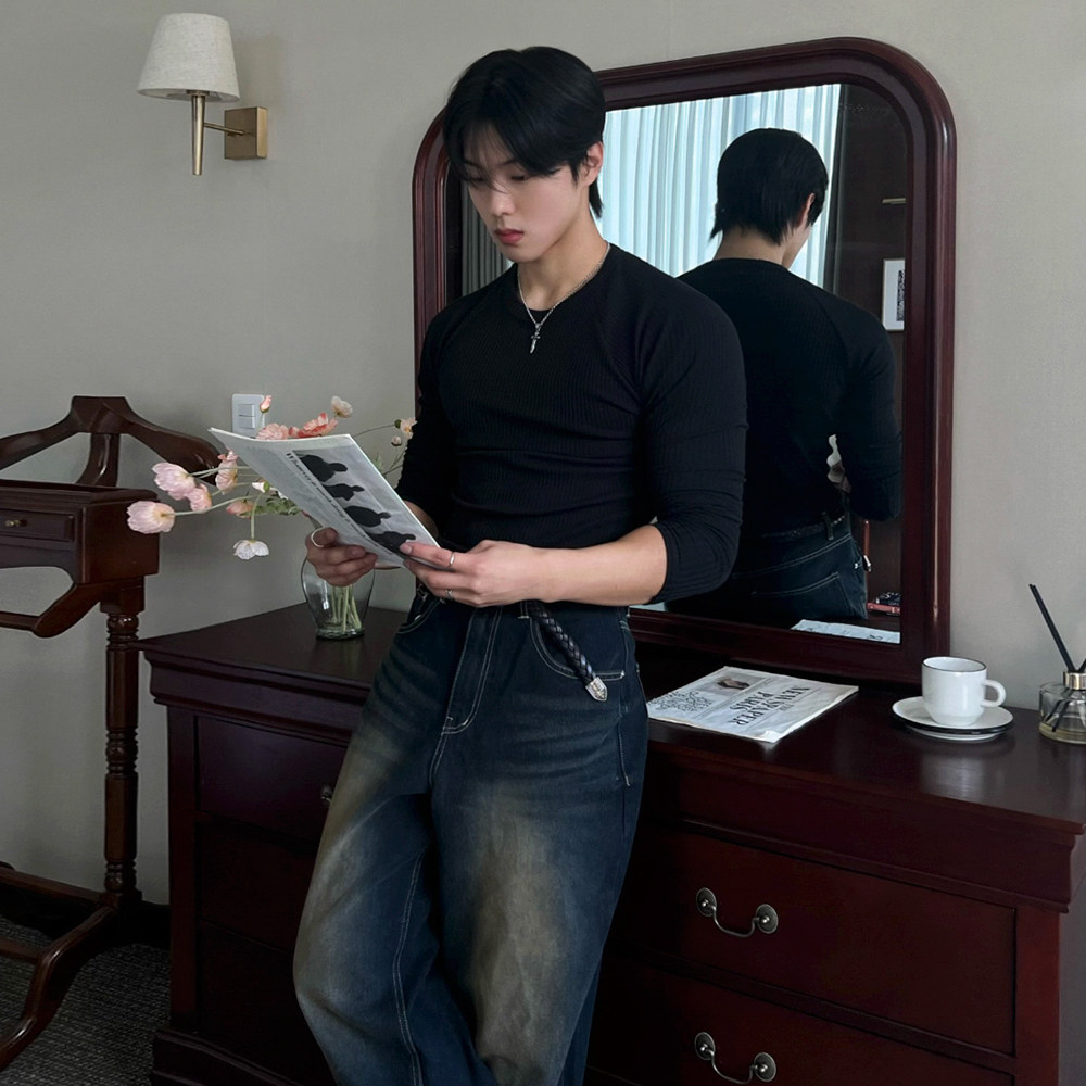📚 MRCYC简约修身圆领长袖T恤男春季健身训练服韩系潮流显肌肉打底衫