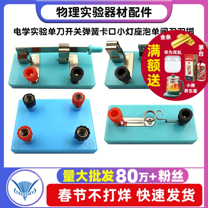 📚 物理实验器材配件电学实验单刀开关弹簧卡口小灯座泡单闸刀双掷