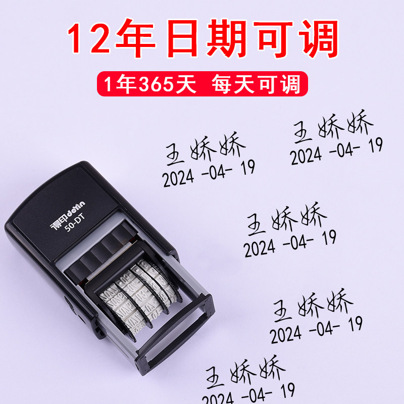 📚 姓名印章带日期可调日期名字章印得印签名印章定制名字可调日期签名印章按压式回墨翻斗自动出墨姓名签字章