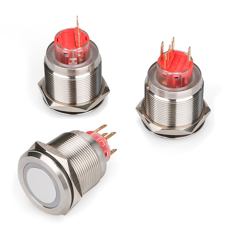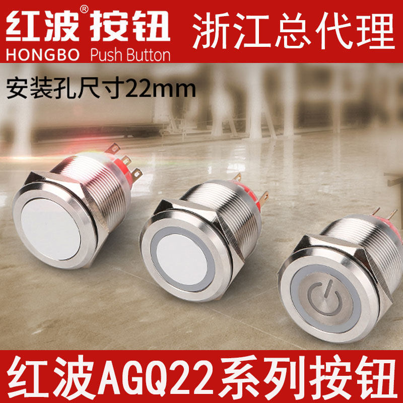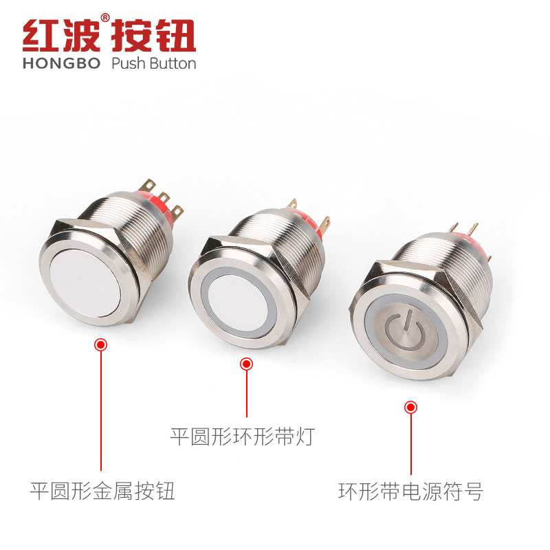 📚 红波金属按钮22mm防水带LED灯自复位自锁小型圆形汽车改装开关24V