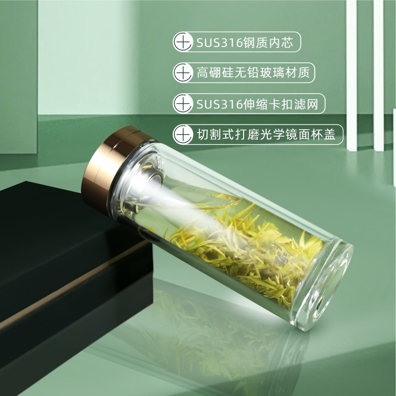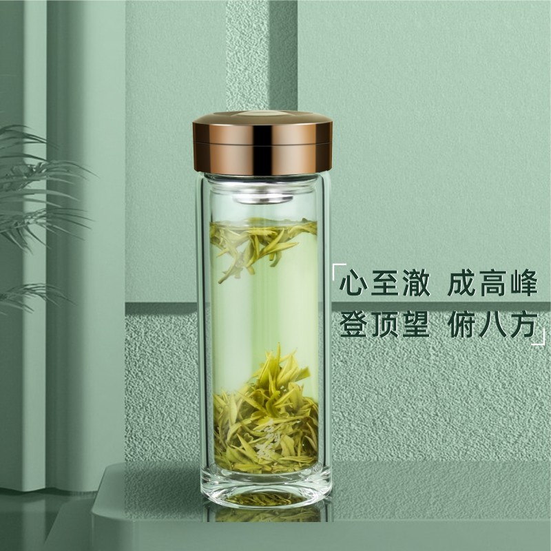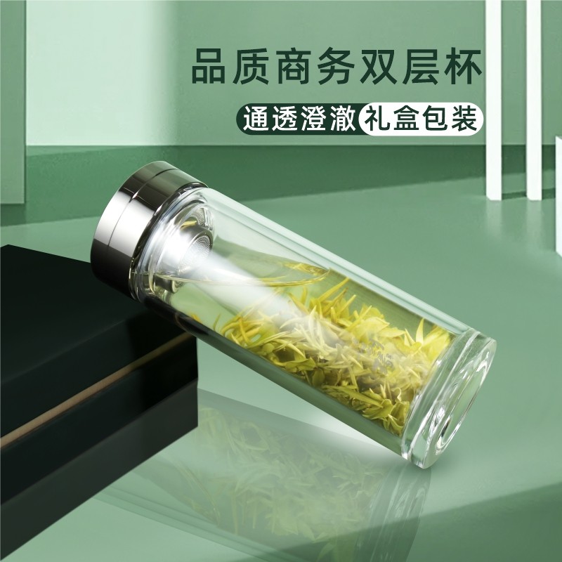📚 启明缘玻璃杯双层私人定制刻字礼盒带滤网商务车载家用切割式杯盖