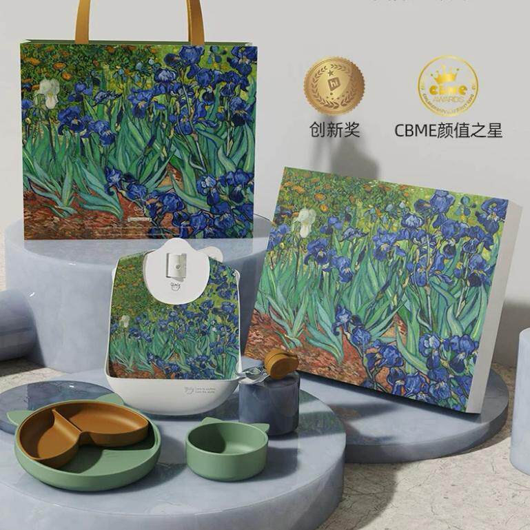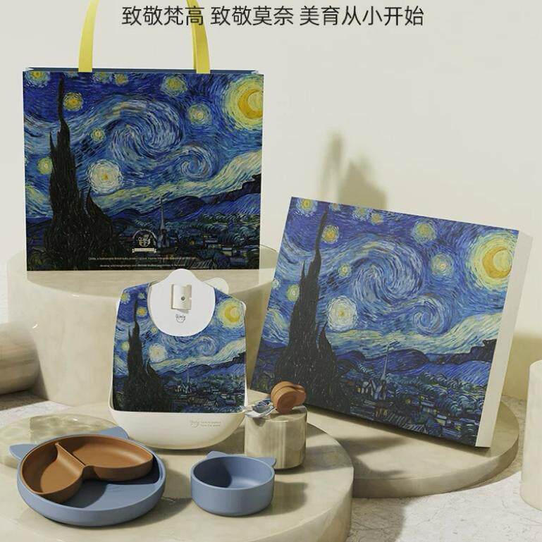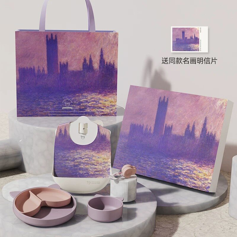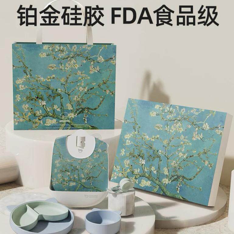 📚 Qlittle宝宝餐具礼盒婴儿辅食套装名画礼盒1-3岁送礼围兜叉勺餐盘