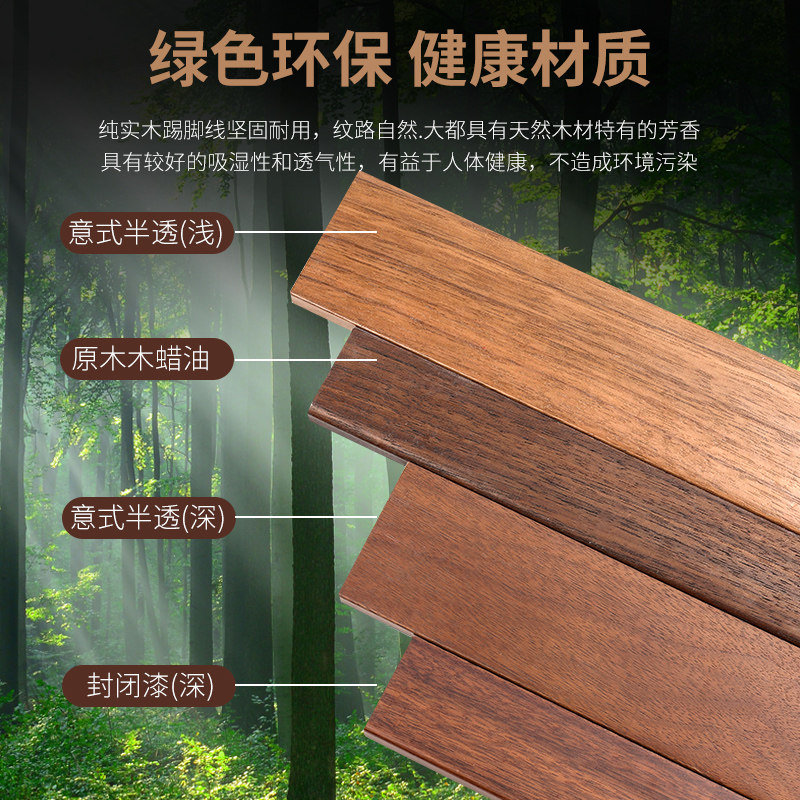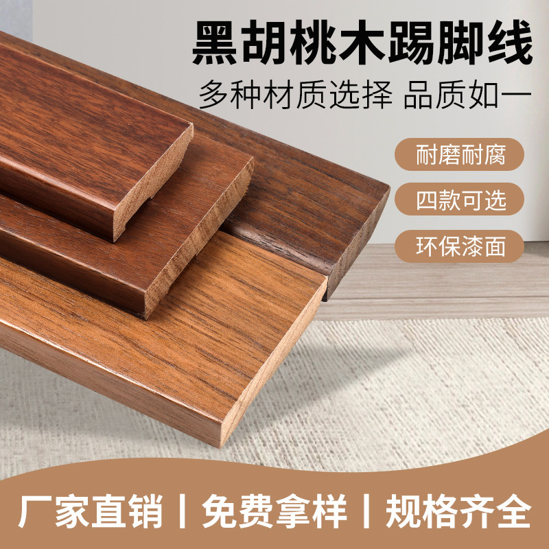 📚 格然 北美黑胡桃原木 实木踢脚线木蜡油4cm6公分平板地脚线贴脚线