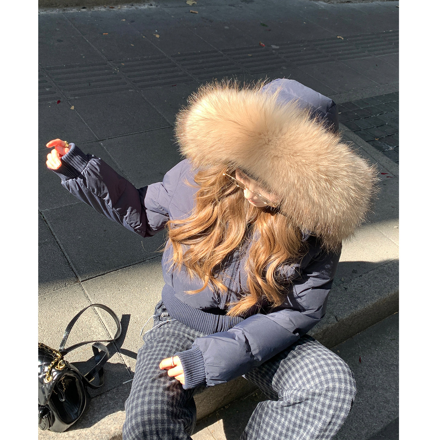 📚 12.01本希benxe/奔赴冬约 收腰貉子大毛领短款90白鸭绒羽绒服外套