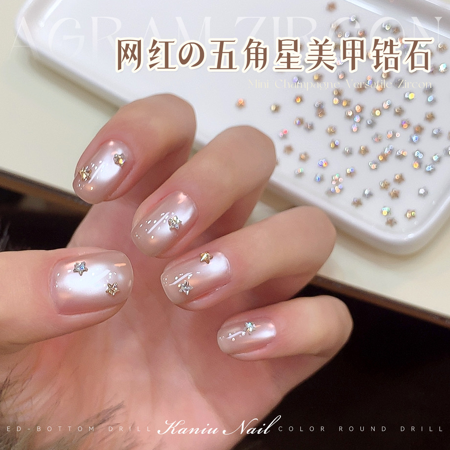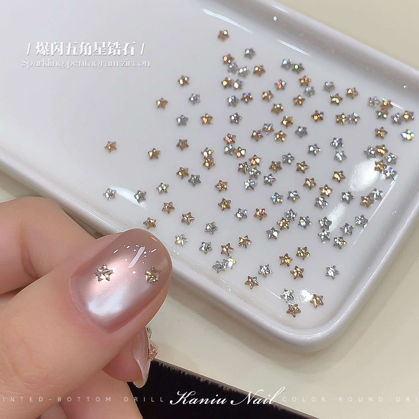 📚 美甲爆闪星星锆石钻秋冬新款香槟银色混装迷你异形平底指甲装饰品