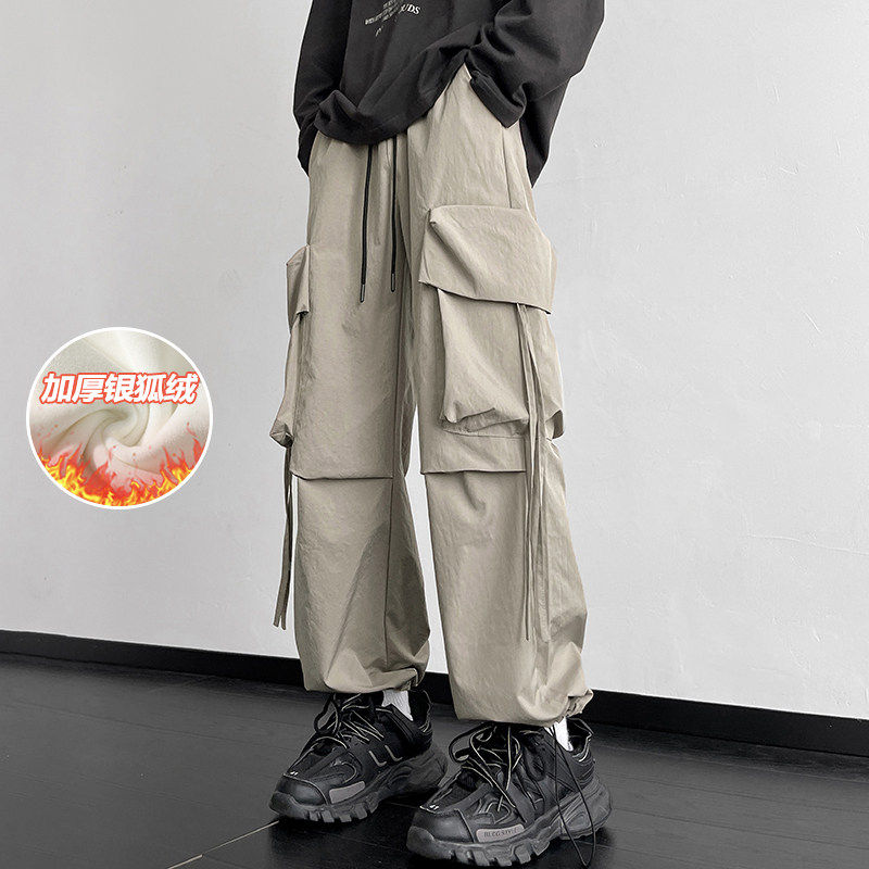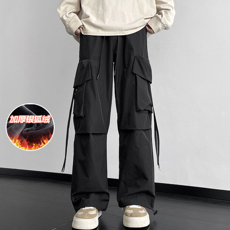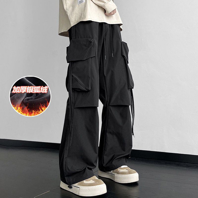 📚 冬季宽松痞帅工装束脚裤男潮流阔腿拖地长裤K1212J加绒
