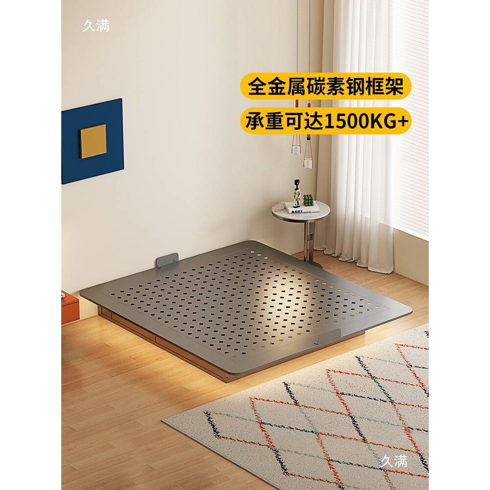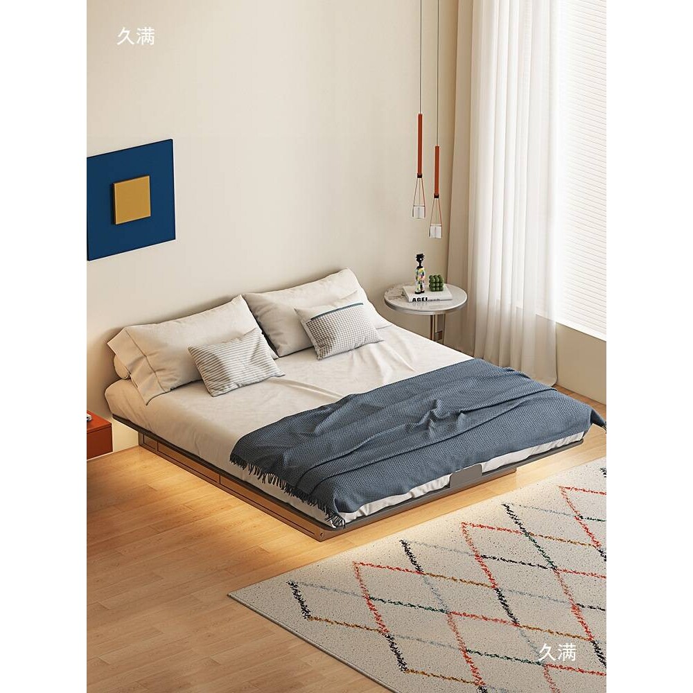 📚 无床头悬浮储物床主卧碳素钢架铁艺小户型双人床1.8米现代简约