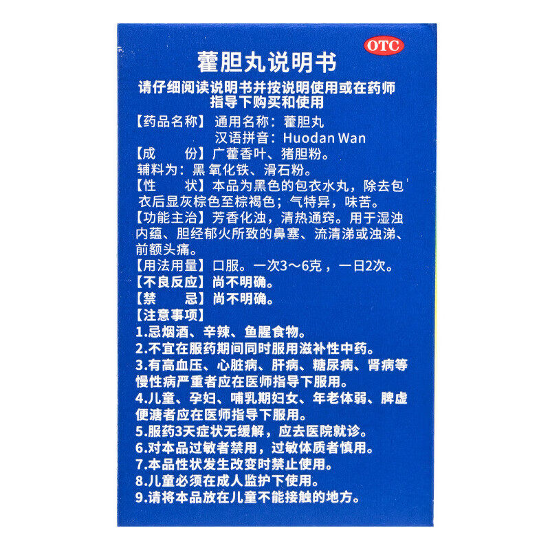 📚 粤华藿胆丸36g清热通窍湿浊内蕴胆经郁火所致鼻塞流清涕前额头痛