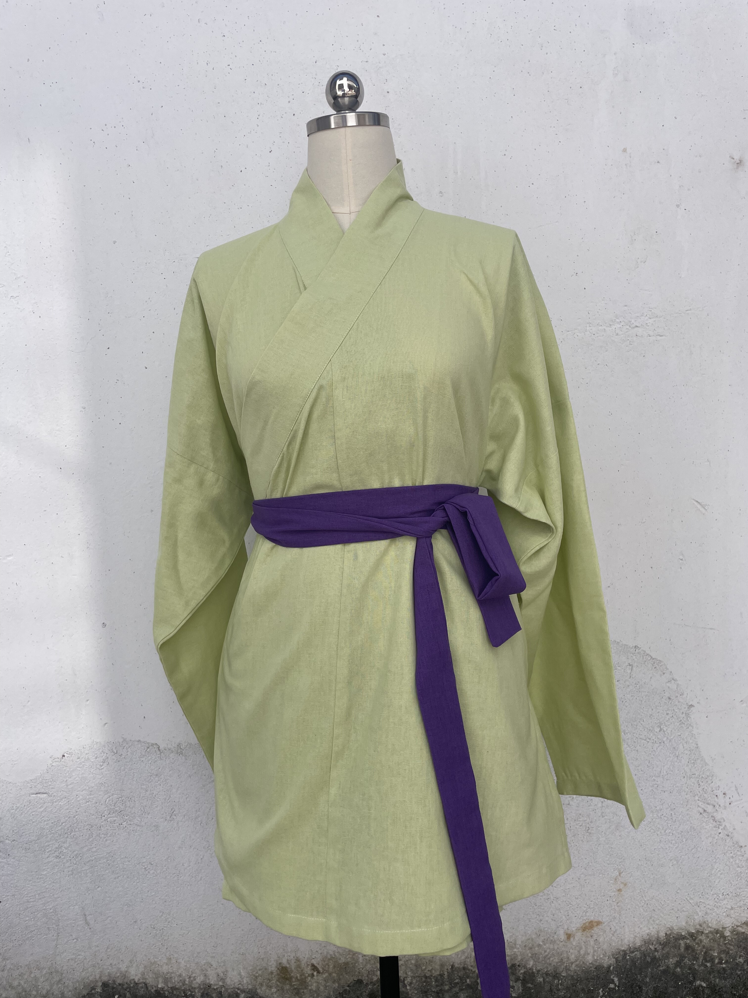 📚 汉服交领长袖中长款棉麻日常田园风百搭清新禅意穿搭休闲短打