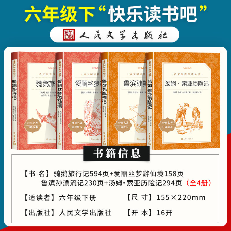 📚 【赠考点】六年级下册必读课外书快乐读书吧人民文学出版社汤姆索亚历险记鲁滨孙漂流记鲁滨逊骑鹅旅行记原著正版爱丽丝梦游仙境