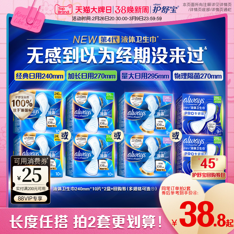 📚 【顶配无感】护舒宝液体卫生巾日用240mm/270mm/295mm姨妈巾