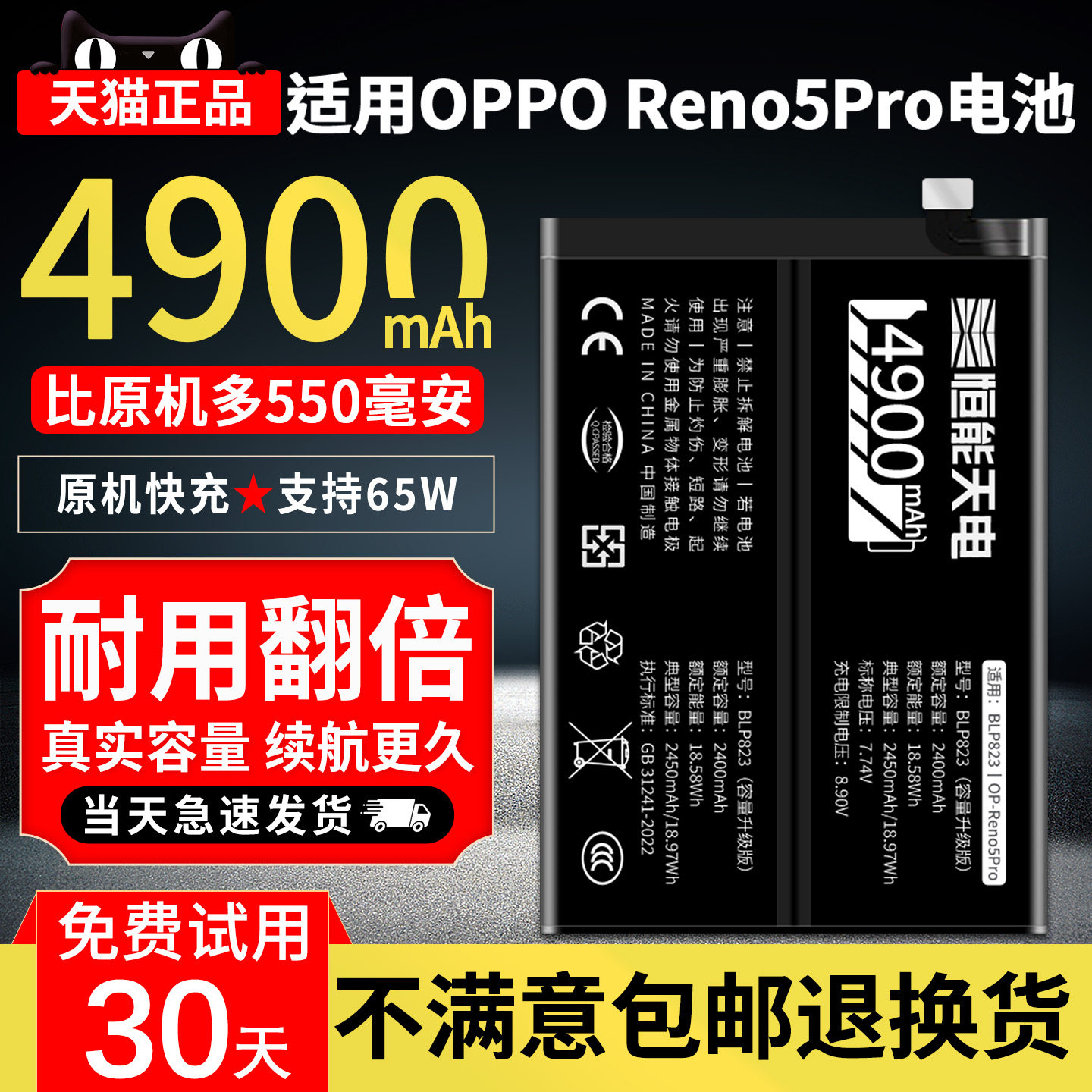 📚 恒能天电适用于oppo reno5pro电池大容量Reno5 5G手机电池BLP823更换扩容魔改电板PDSM00 PDST00非原装厂正品
