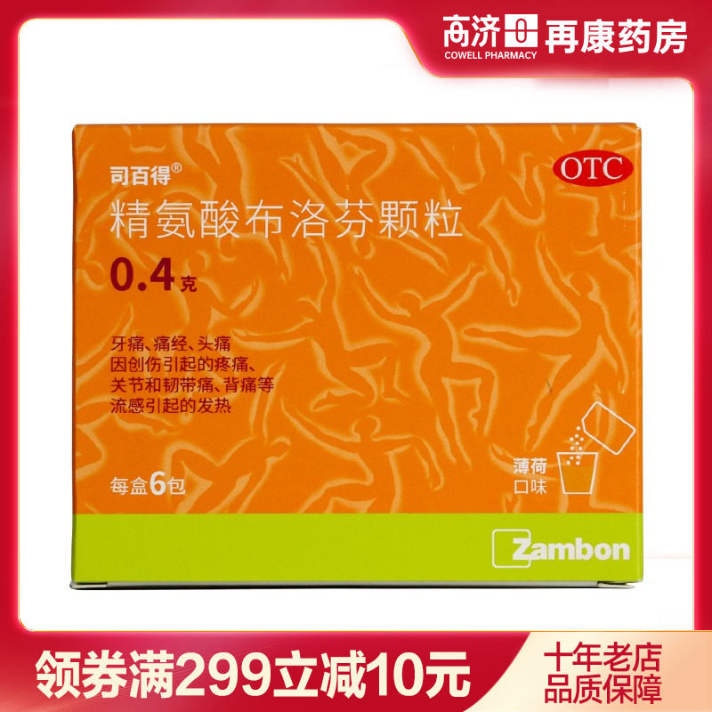 📚 司百得精氨酸布洛芬颗粒0.4g*6包痛经牙痛头痛关节痛流感发热药