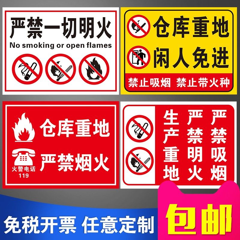 📚 仓库重地禁止吸烟严禁烟火闲人免进警示牌严禁一切明火警告牌防火