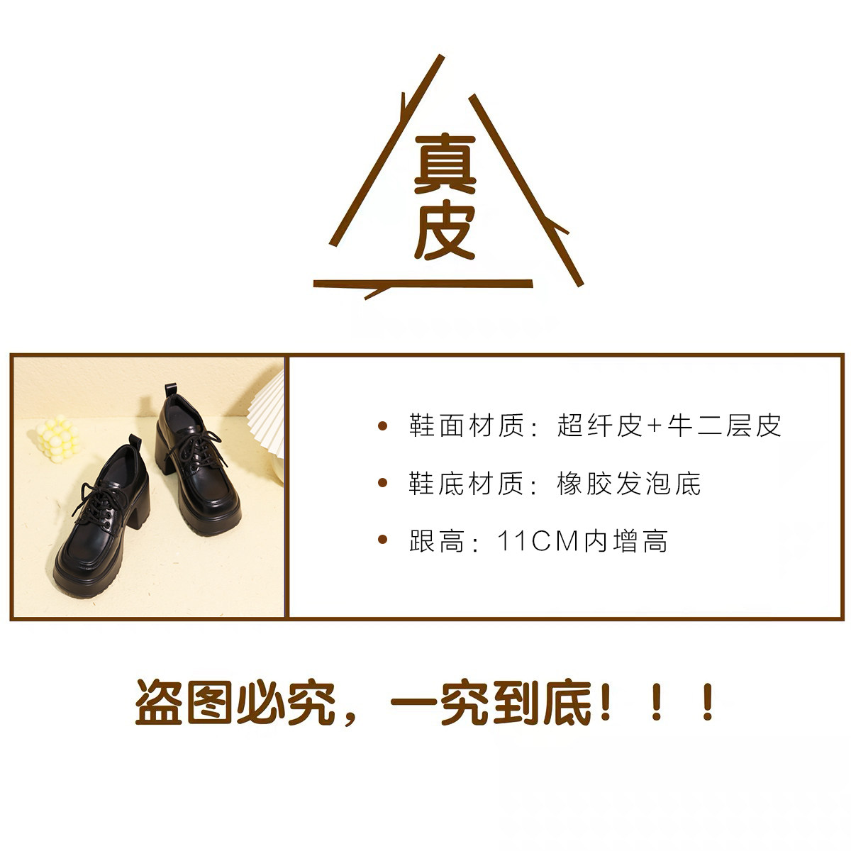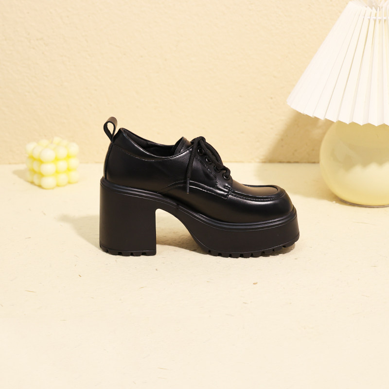 📚 超厚底女鞋粗跟高跟单鞋小个子增高11cm内增高小皮鞋矮子乐厚底鞋
