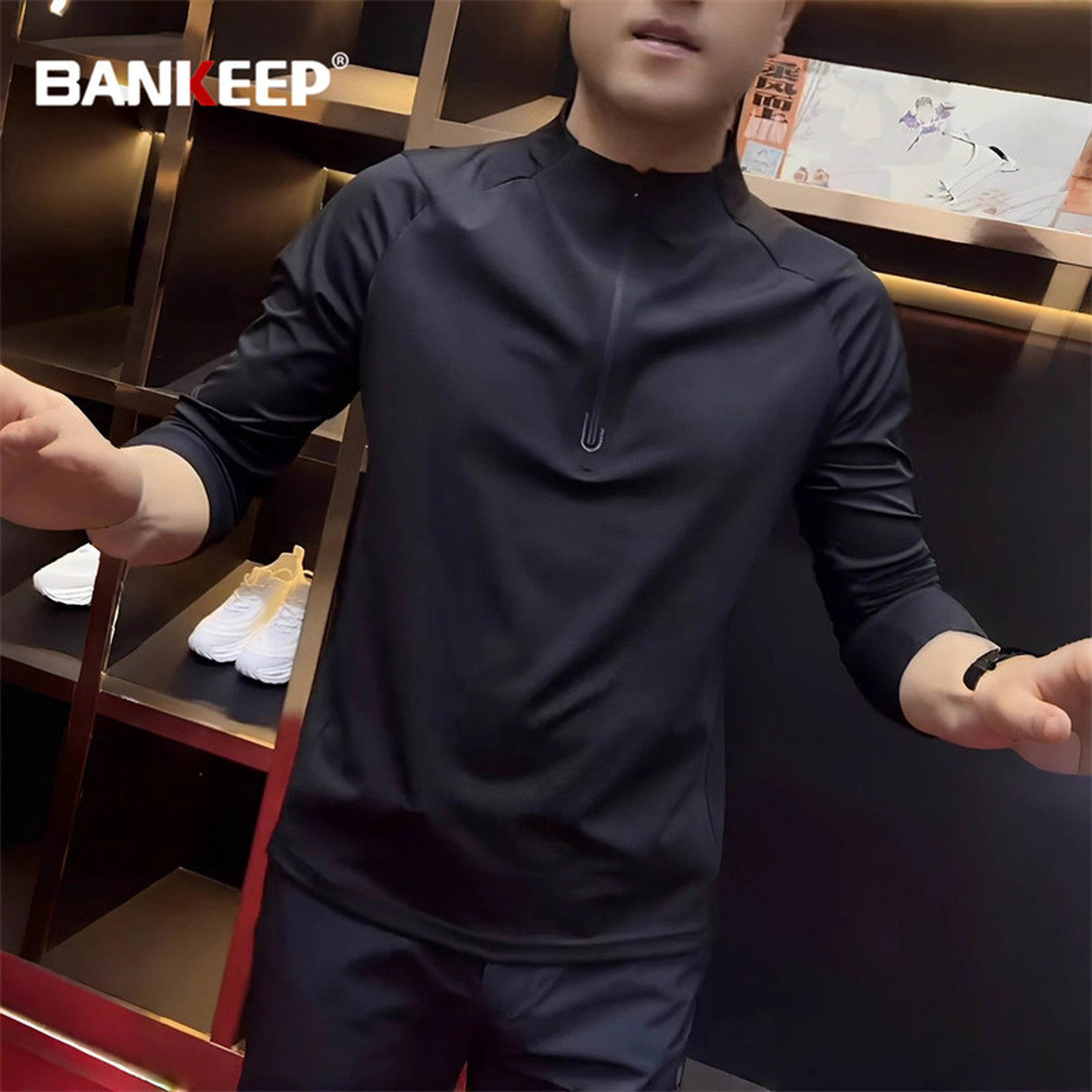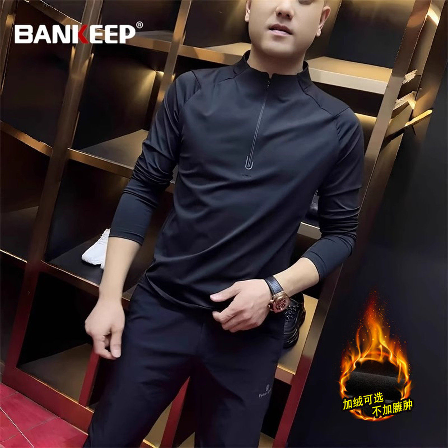📚 高端半拉链卫衣男士长袖t恤2026新款冬季薄绒休闲内搭打底衫男款