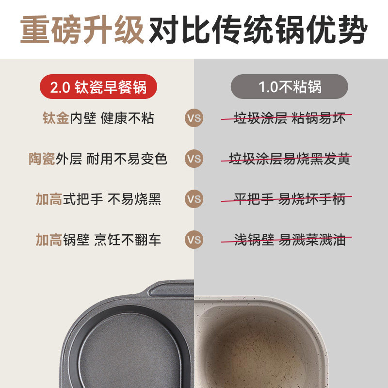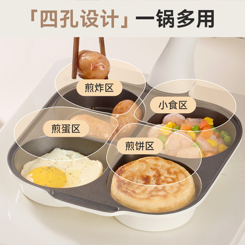📚 Jeetee吉特有钛陶瓷煎鸡蛋汉堡锅平底锅不粘锅煎锅家用四孔煎蛋锅