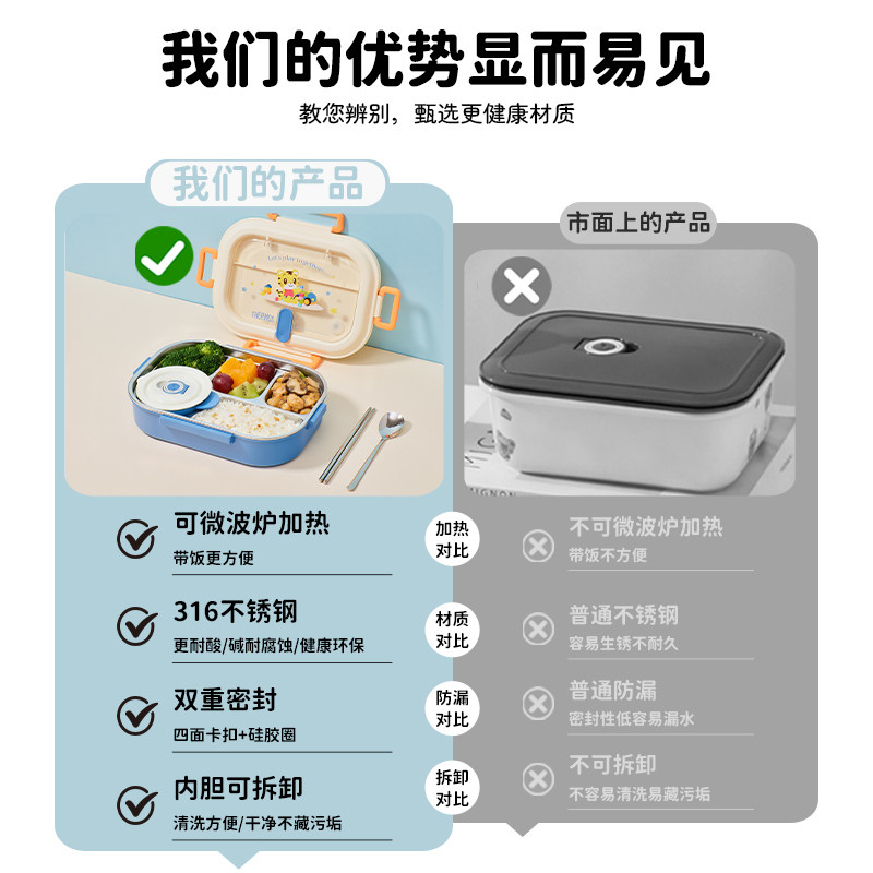 📚 膳魔师儿童保温饭盒316L不锈钢中小学生分隔餐盘上班族微波带饭