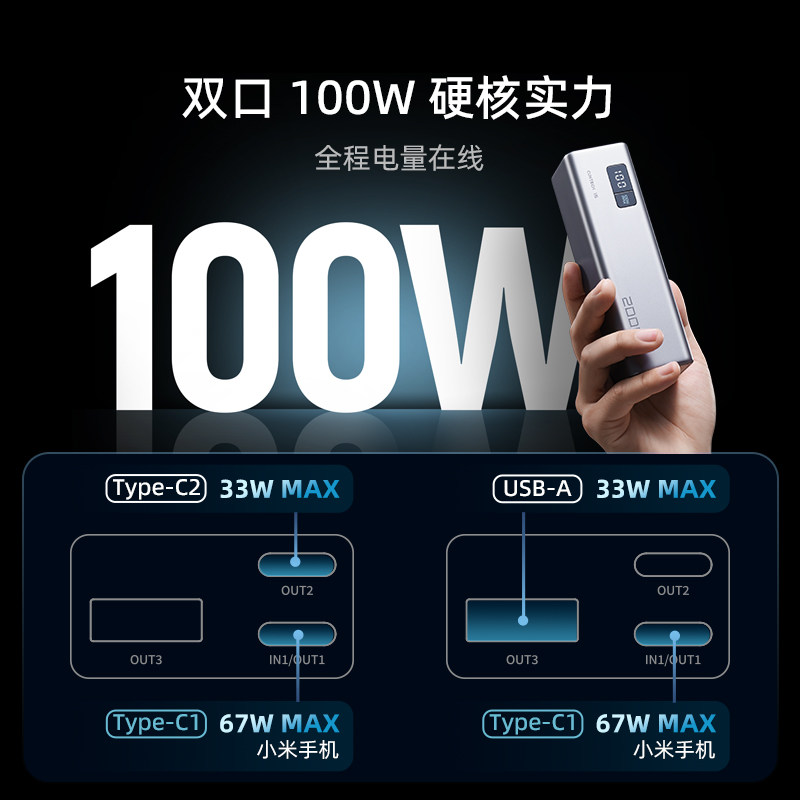 🎁这款充电宝简直是移动电源界的“黑马”!它的电芯容量高达20000毫安时,让你随时随地都能畅享大容量电池的体验!而且功率高达100W,无论是为手机、平板还是笔记本电脑充电,都能轻松应对!