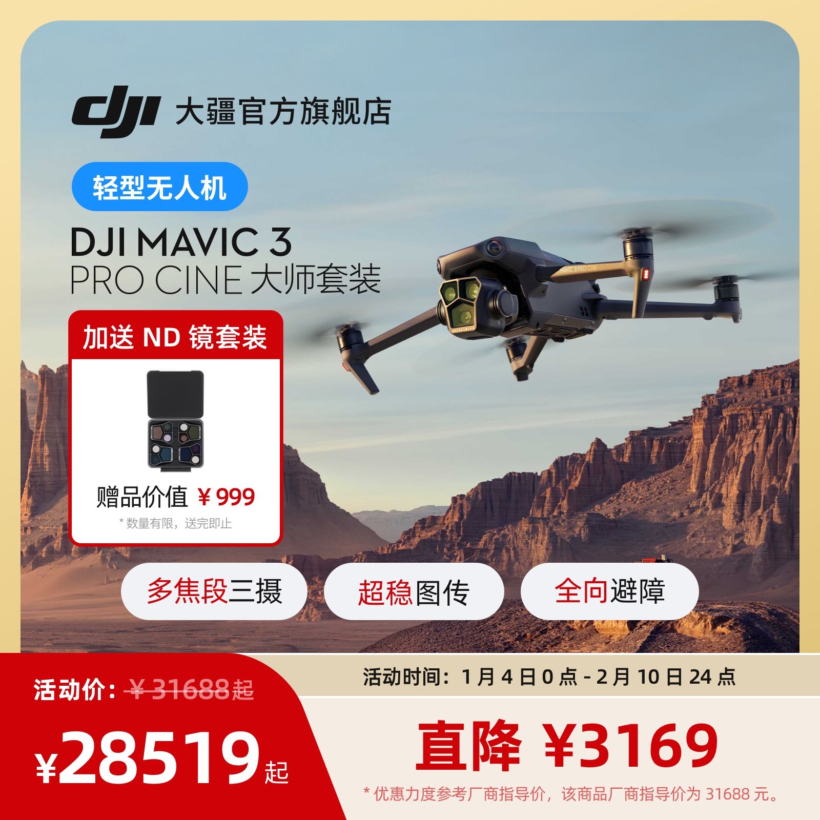 29¥ CZ225 FbRvUlIt2d5¥ https://m.tb.cn/h.7v20t0M 大疆 DJI Mavic 3 Pro 御3三摄旗舰航拍机 DJI Mavic 3 Pro Cine 高清专业大师版航拍器 大疆无人机 --------------------- 【原售价】33,976元 【现售价】28,519元。