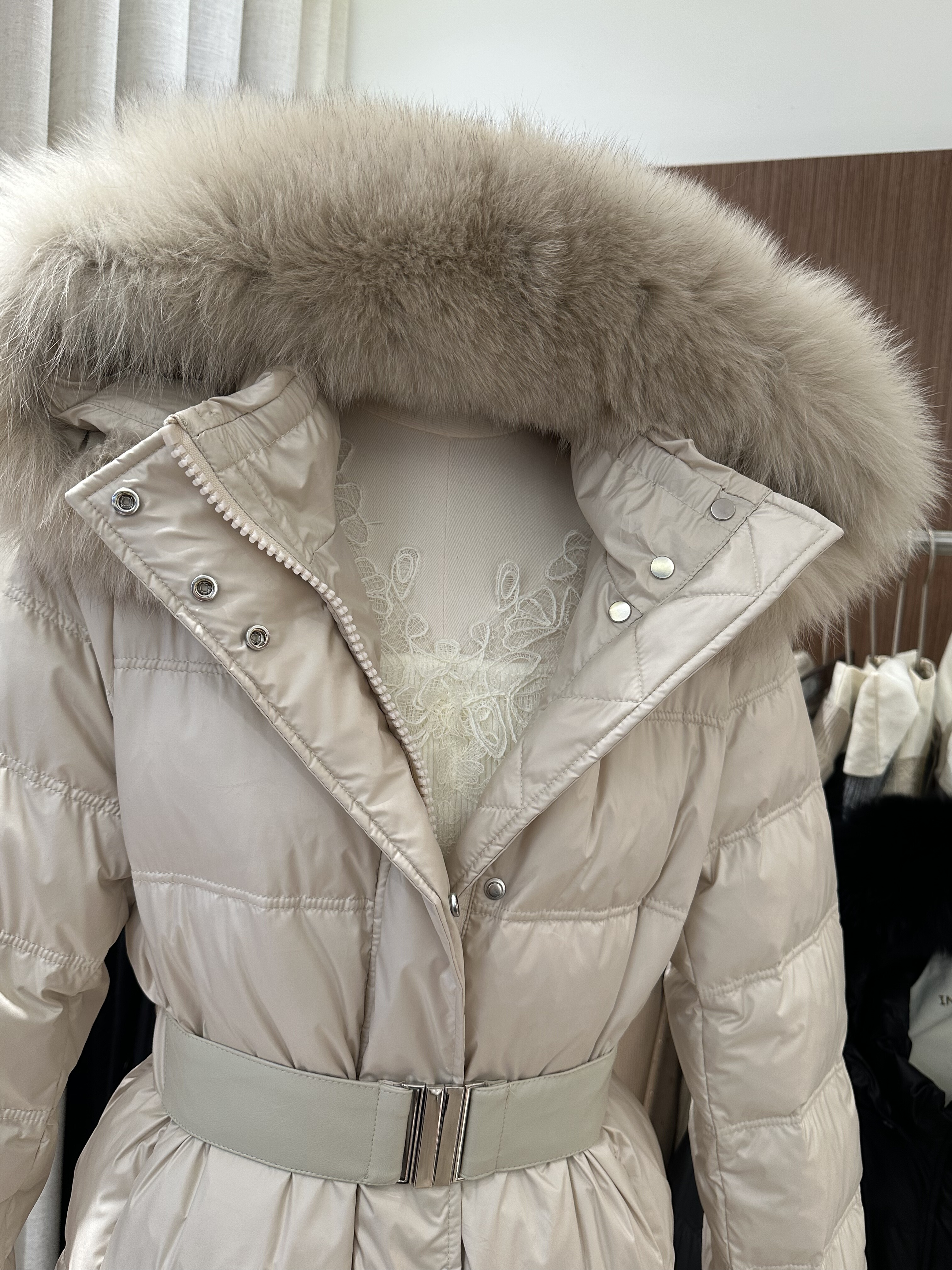 📚 真大毛领连帽羽绒服女款冬季2025中长款收腰显瘦90白鸭绒外套女