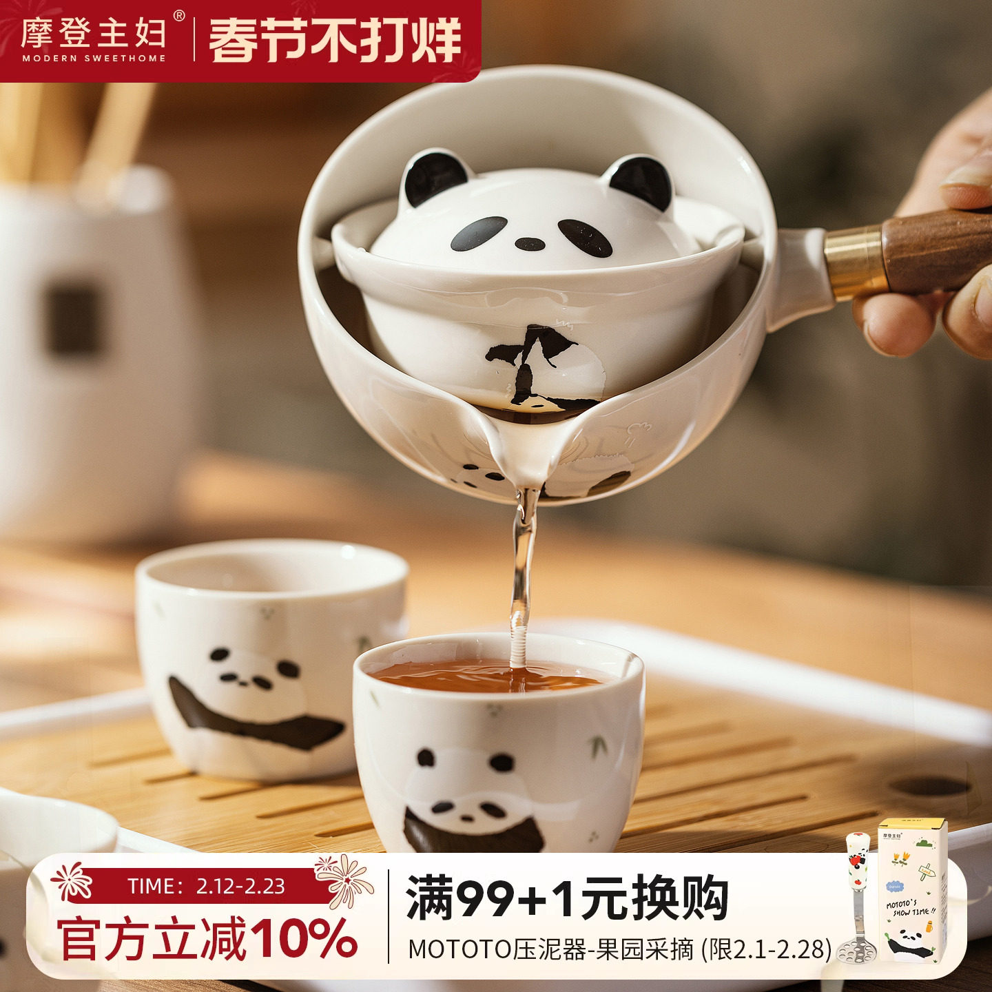 📚 摩登主妇mototo熊猫功夫茶具套装便携一人饮泡茶壶家用陶瓷喝茶杯