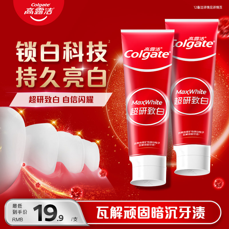 📚 【秒杀】高露洁超研致白牙膏高纯度美白粒子瓦解顽固牙渍结婚一对