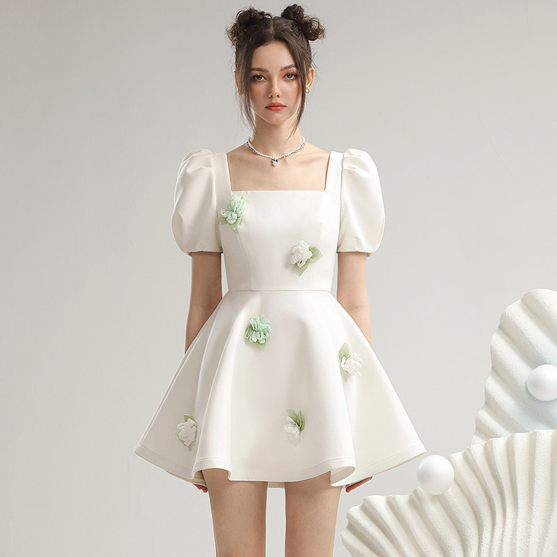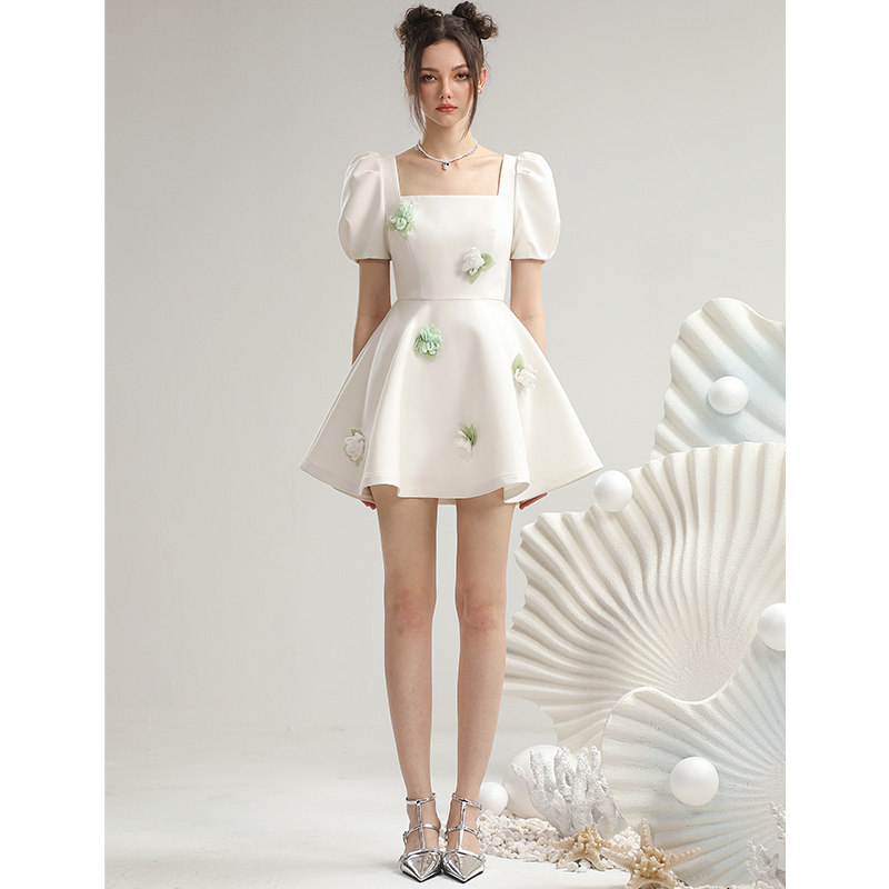 📚 茬客【玫瑰拟人化】甜美少女连衣裙25年夏款立体花朵减龄修身裙子