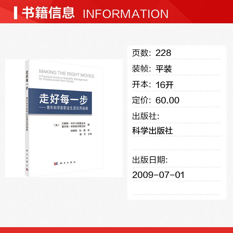 📚 走好每一步——青年科学家职业生涯实用指南 (美)巴勒斯·韦尔卡姆基金会,霍华德·休斯医学研究所 编 闻朝君,张蕾 译 医学其它