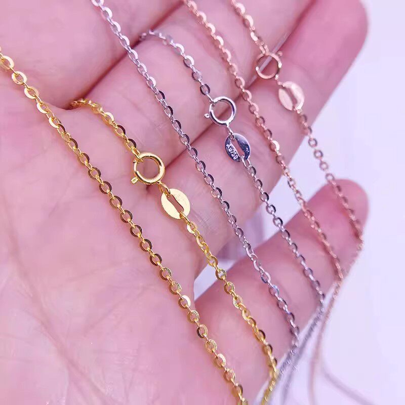 📚 18K金项链女K金链子AU750彩金黄金裸链玫瑰金O字链替换细素链单链
