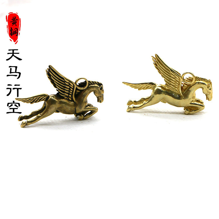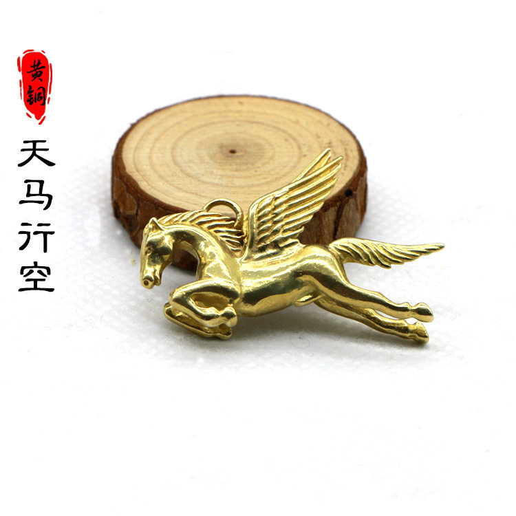 📚 纯铜黄铜天马行空天使翅膀项链坠吊坠钥匙扣实心吊坠奔腾骏马项坠