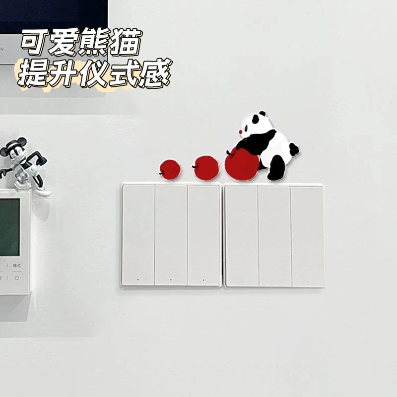 📚 可爱熊猫亚克力开关贴客厅熊猫贴纸防水套防脏插座保护套装饰墙贴
