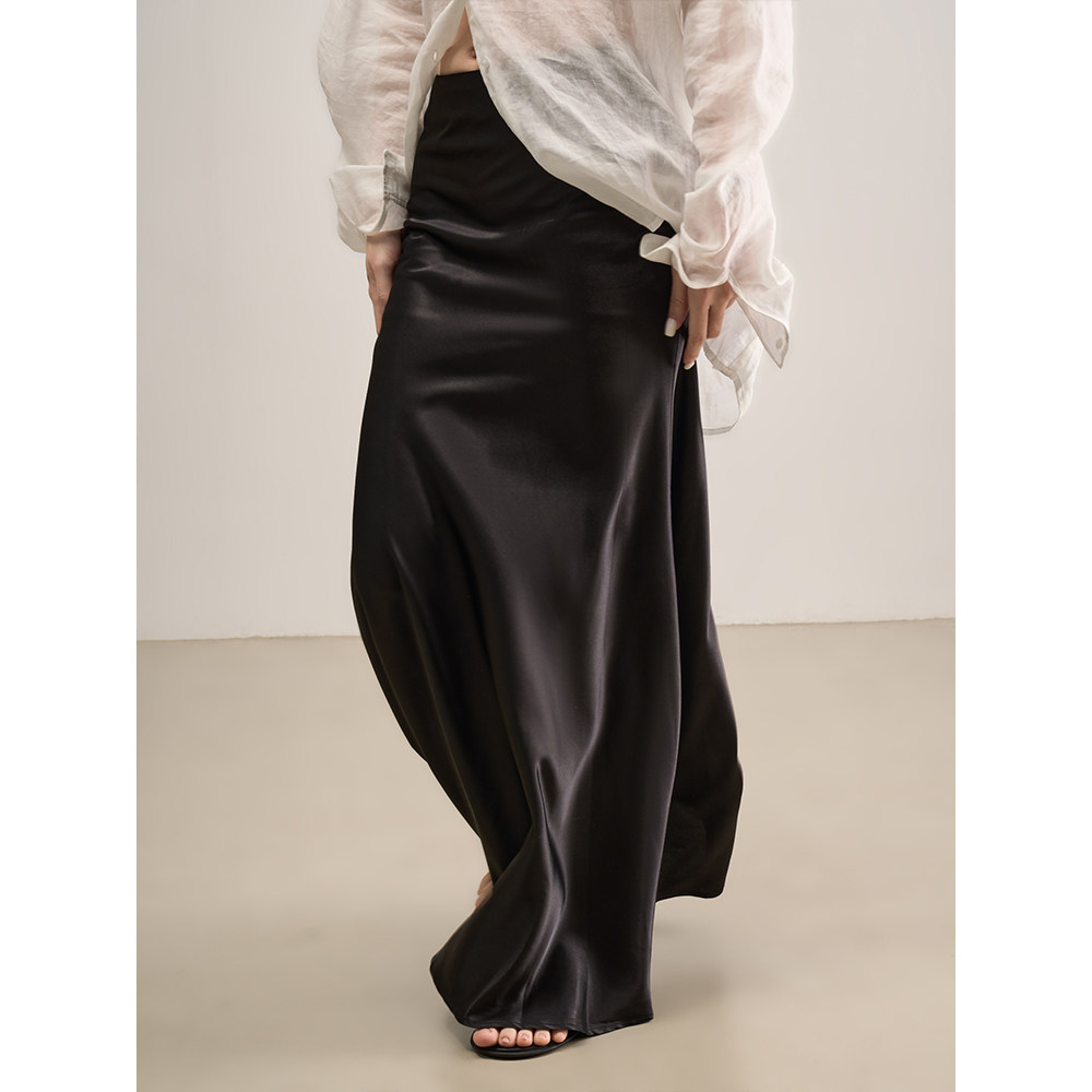 📚 LANVIVIER 极简静奢风流光溢彩黑色缎面长款拖地鱼尾裙新款26春夏