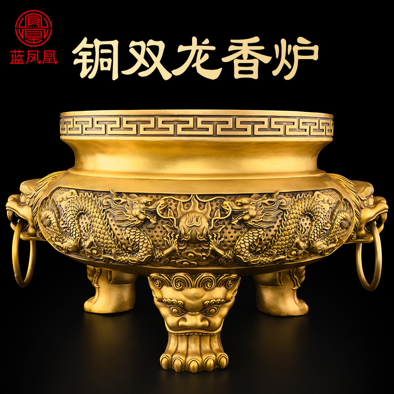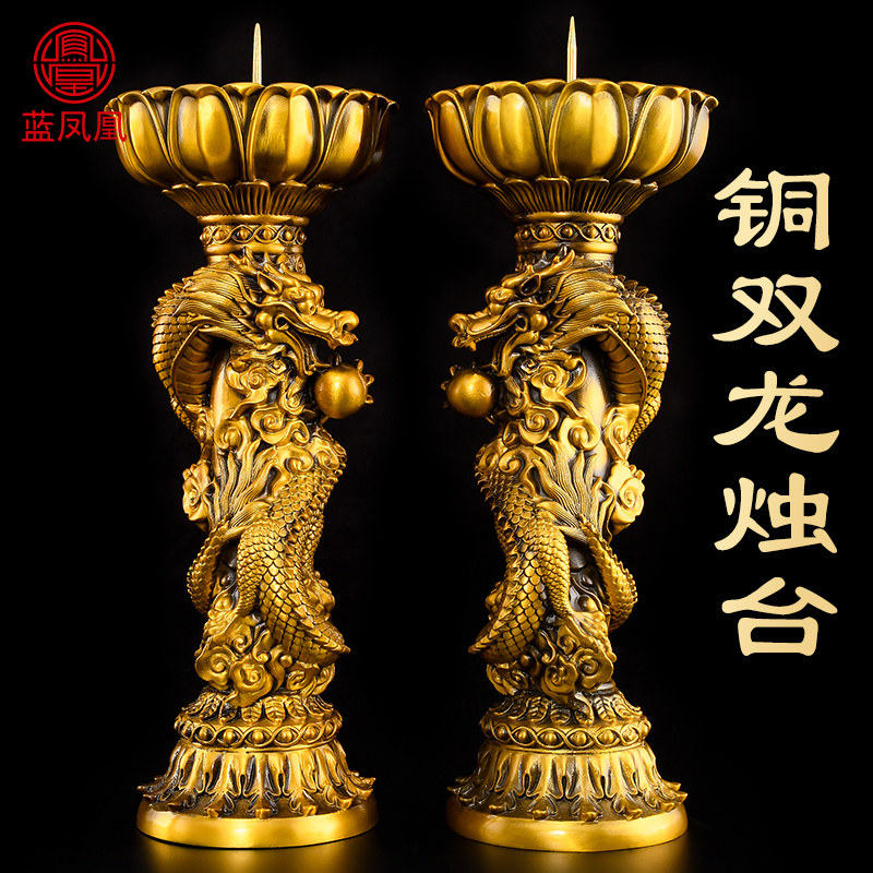 📚 铜香炉家用供奉佛前供具三件套铜烛台供关公财神像果盘全套摆件