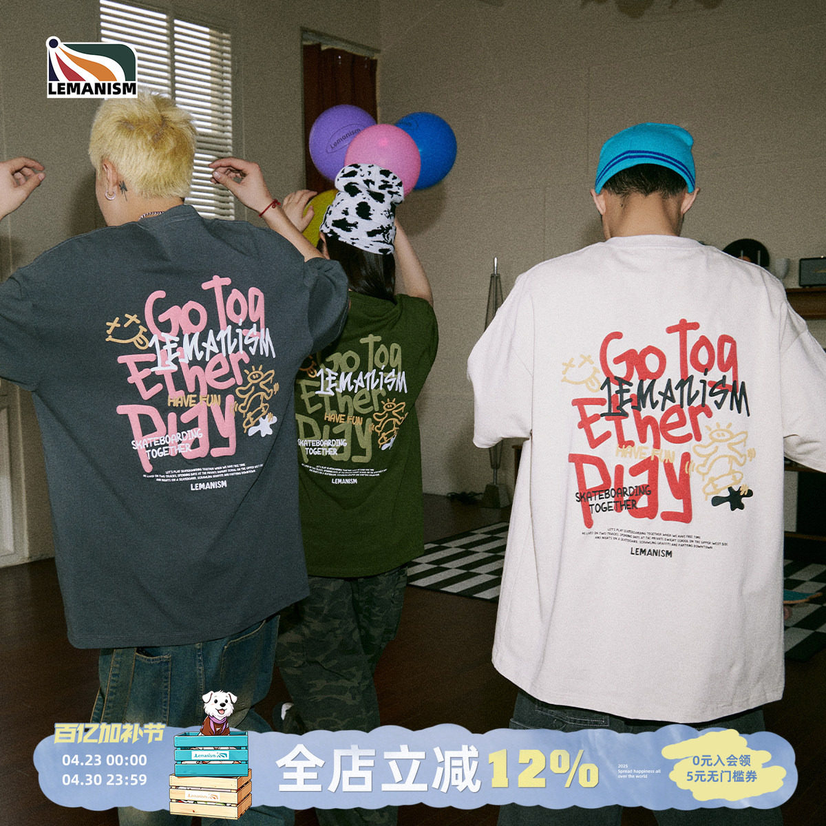📚 明星同款lemanism美式发泡T恤短袖男夏季潮牌260g重磅情侣体恤衫