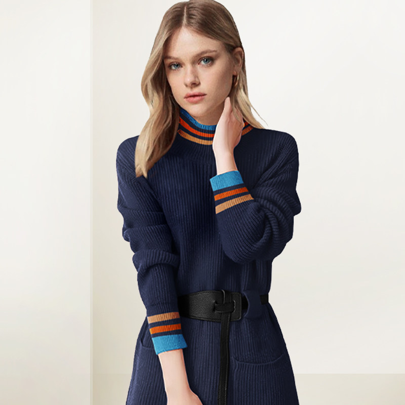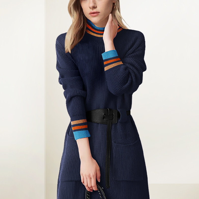 打底高领中长衣裙连衣裙