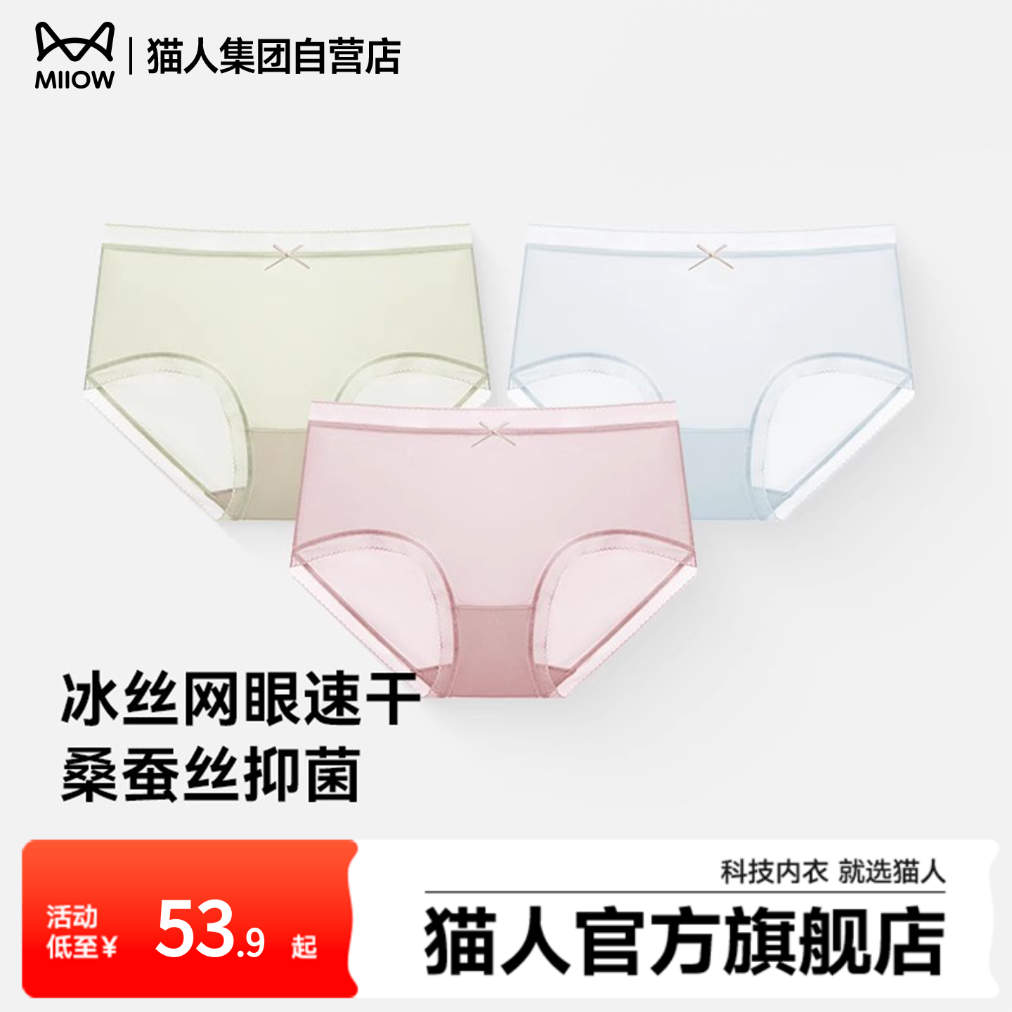 📚 猫人内裤女网眼透气性感网纱蕾丝边桑蚕丝抗菌裆蝴蝶结三角短裤头