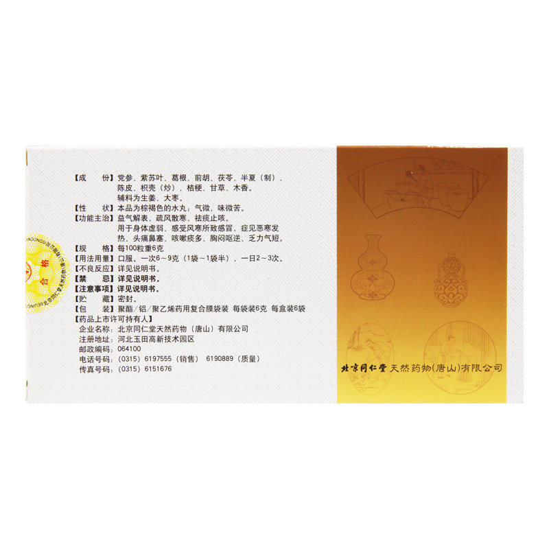 📚 同仁堂 参苏丸 6g*6袋/盒 益气解表 疏风散寒 止咳祛痰