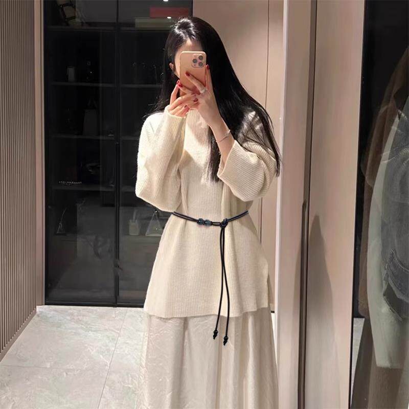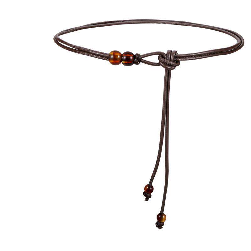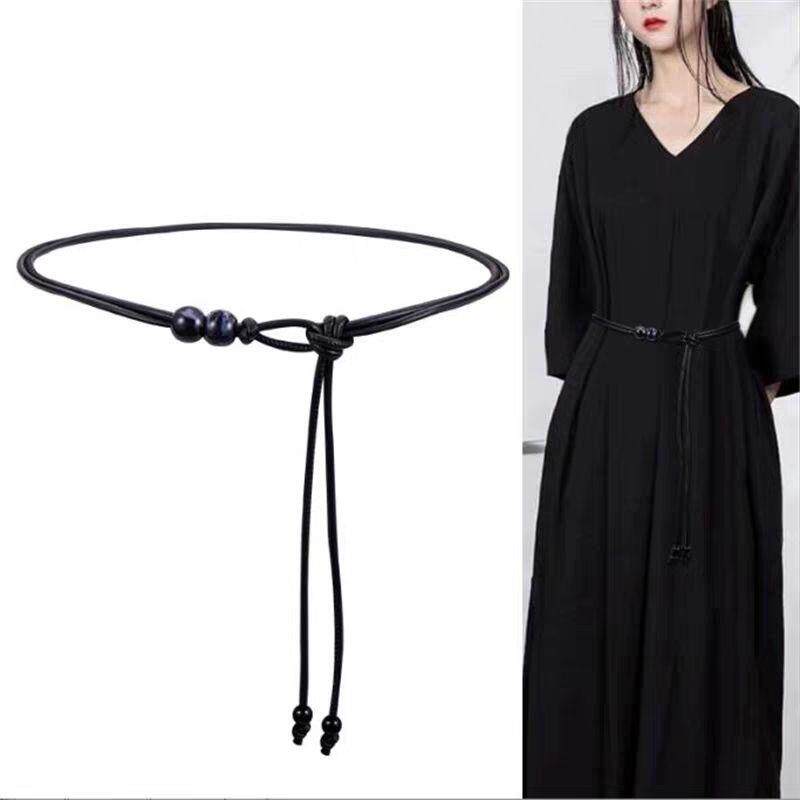 📚 日本高级感细腰带女皮绳腰链配裙子毛衣大衣羽绒服黑色百搭小皮带