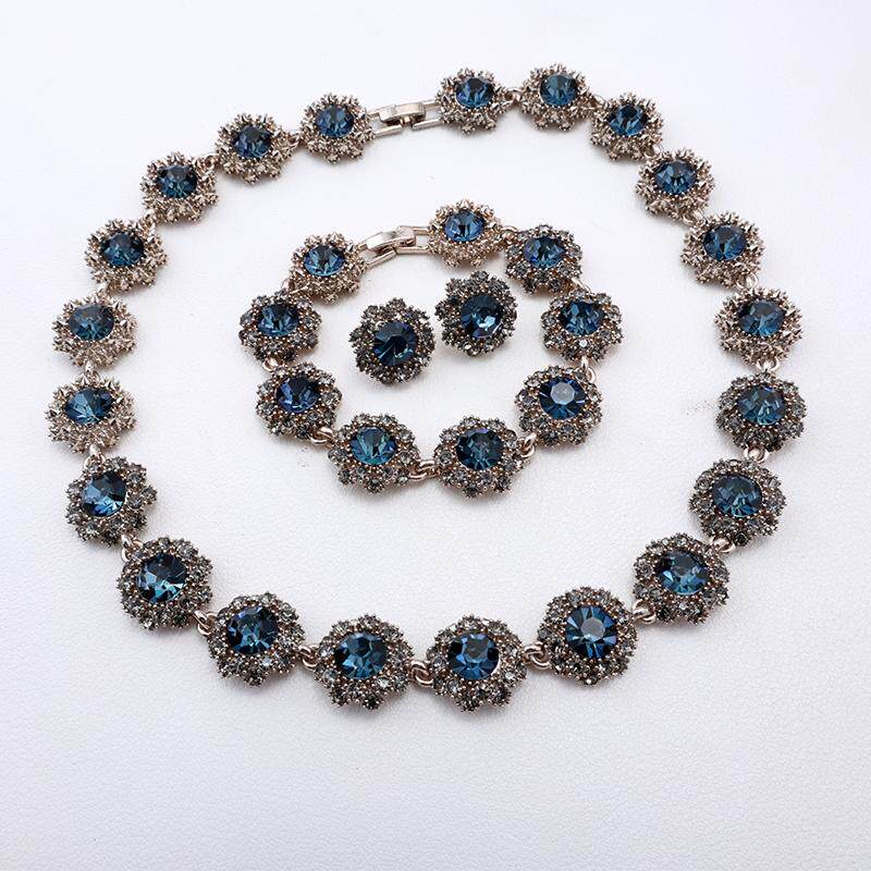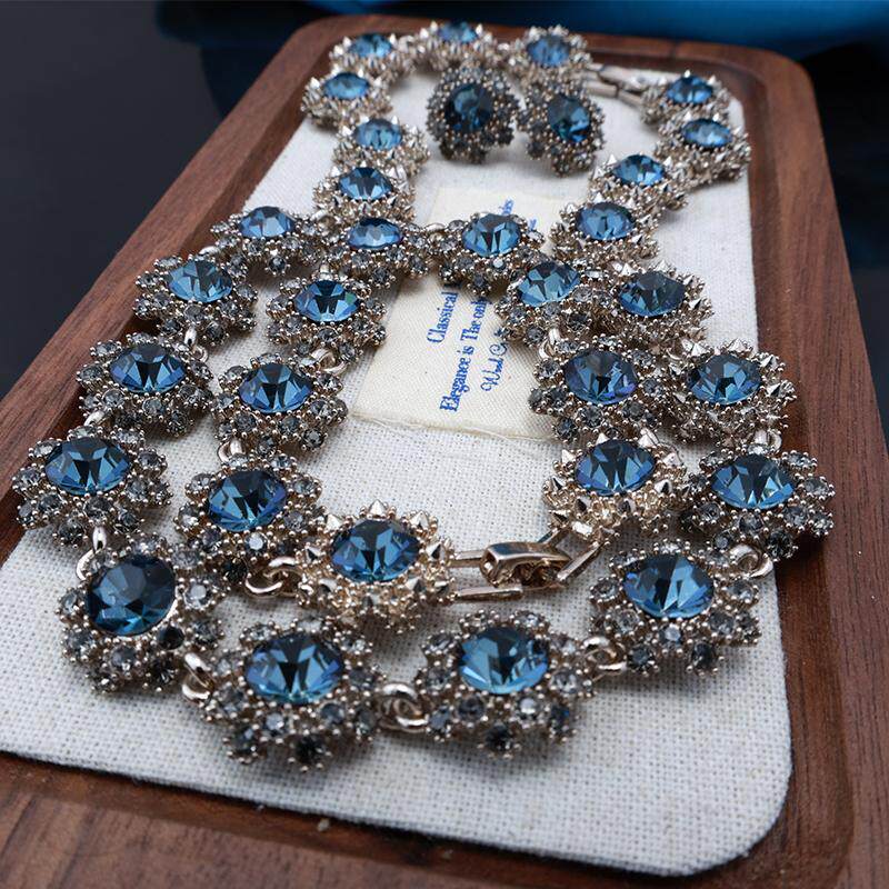 📚 镶闪钻兰宝项链手链耳环三件套装复古vintage宫廷水晶锁骨链配饰