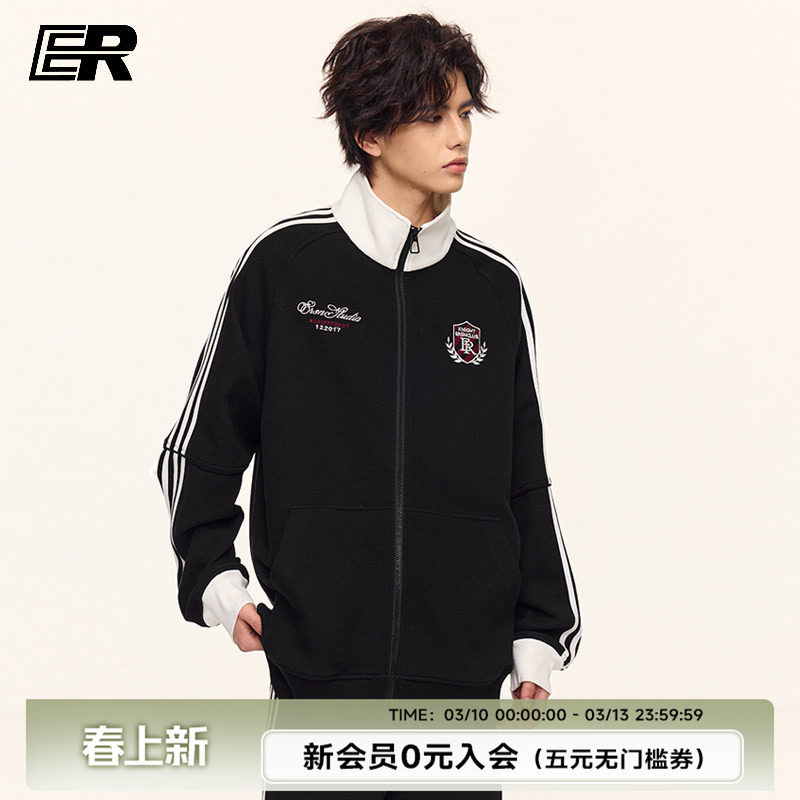 📚 【明星同款】ER撞色条纹立领开衫卫衣男春美式潮牌运动运动服外套