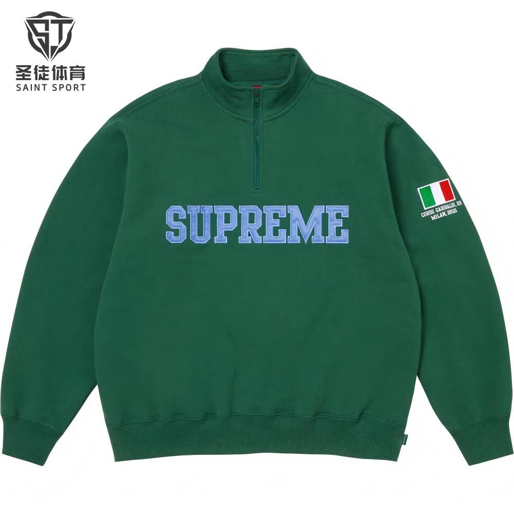 📚 正品 Supreme 26SS Shop Flag Half Zip 袖口国旗 半拉链卫衣