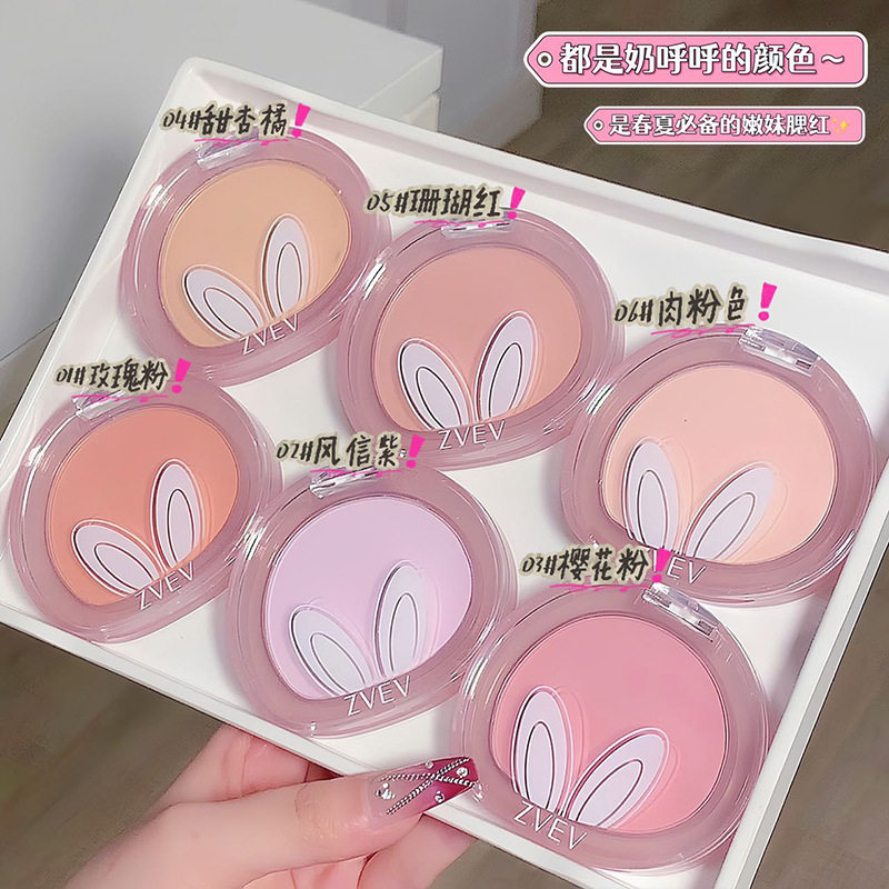 📚 ZVEV长耳朵单色腮红哑光纯欲修容单色自然裸妆提亮修容兔子粉饼女