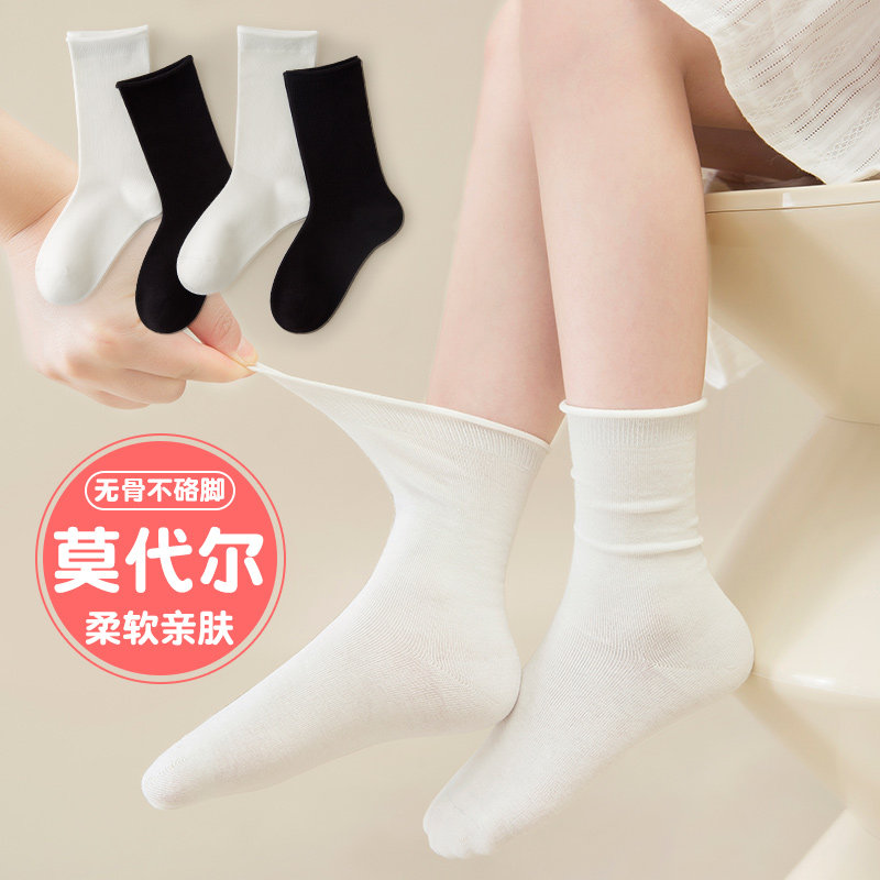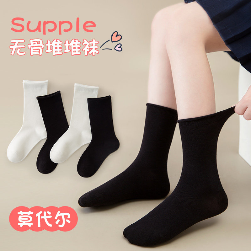 📚 儿童袜子春夏薄款卷边中筒袜中大童无骨学生袜女童韩系黑白堆堆袜