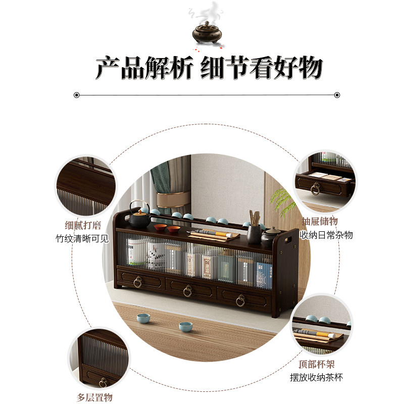 📚 新中式桌面博古架非实木茶桌茶具置物架办公室小型紫砂壶摆放架子