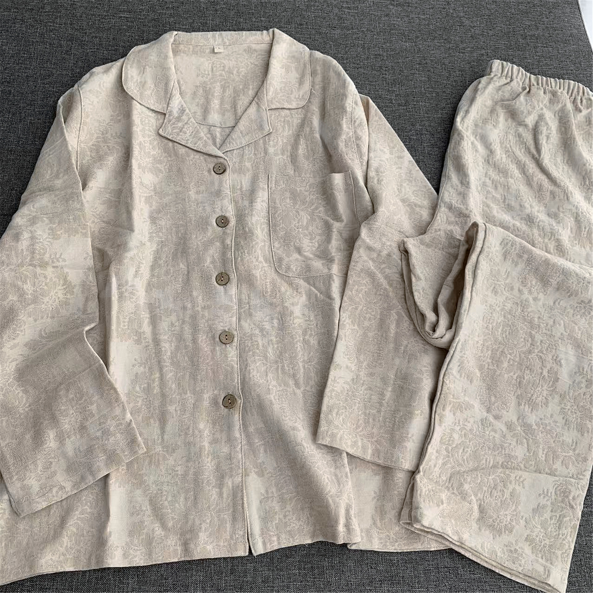 📚 棉麻亚麻男女款情侣睡衣家居服长袖长裤套装春秋新款安妮提花