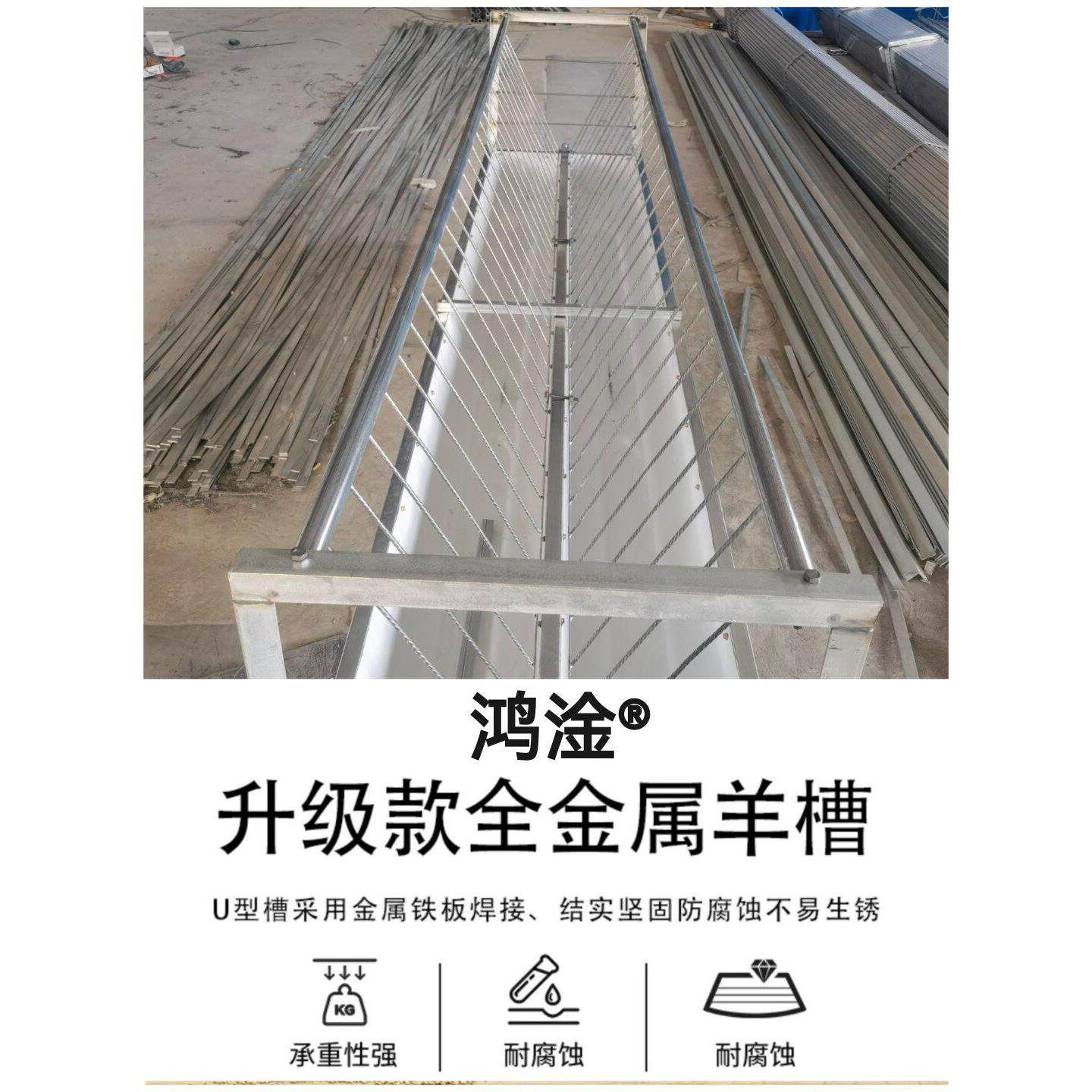 📚 喂羊食槽双面羊槽子铁草架养羊料槽质量加厚槽子输送带带架子牢固