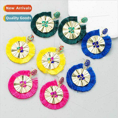 📚 ins nd earrings female fashion tassel inlaid colorful rhines