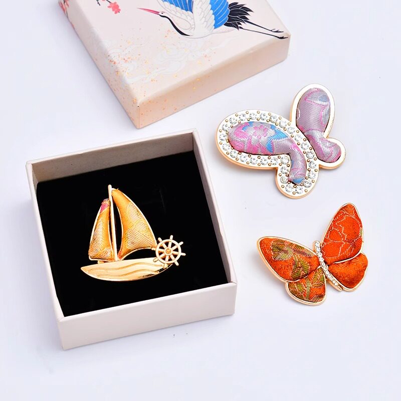 📚 手工非遗宋锦diy胸针材料包发夹发绳仿刺绣布贴饰品配件礼物